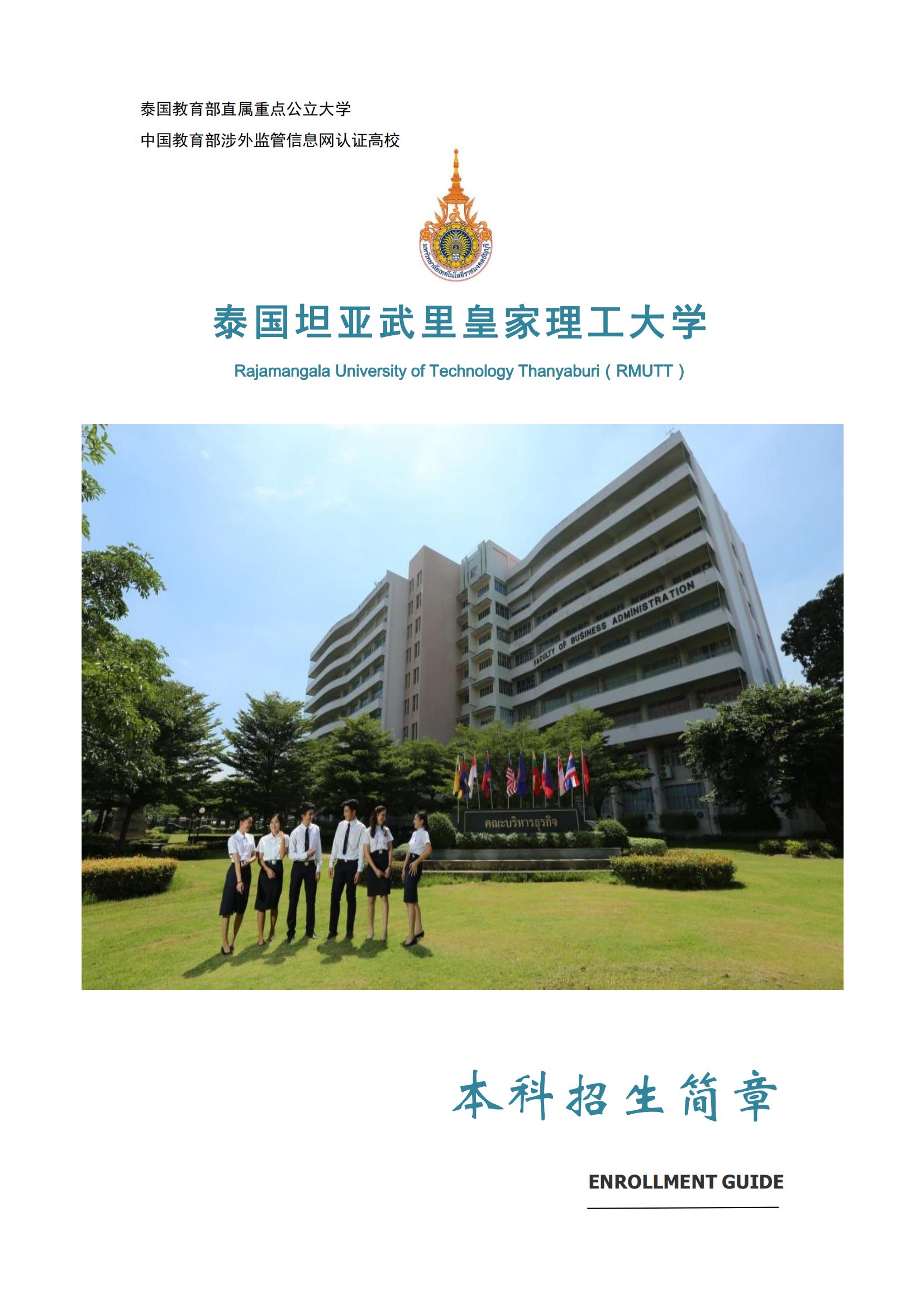 坦亞武里皇家理工大學(xué)(RMUTT)創(chuàng)辦于1975年,是泰國教育部直屬的重點公立大學(xué)。學(xué)校位于首都曼谷的坦亞武里區(qū),占地面積約2000畝。RMUTT所頒發(fā)學(xué)位受世界各國的廣泛承認,是中國教育部承認的第一批泰國高校(中國教育部教育涉外監(jiān)管信息網(wǎng) 泰國 按字母排序第44位)。泰國皇室詩琳通公主為學(xué)校知名校友。目前學(xué)校設(shè)置有工程學(xué)院、科學(xué)技術(shù)學(xué)院、商學(xué)院、藝術(shù)學(xué)院、建筑學(xué)院、農(nóng)業(yè)科學(xué)技術(shù)學(xué)院、醫(yī)學(xué)院等11個學(xué)院。