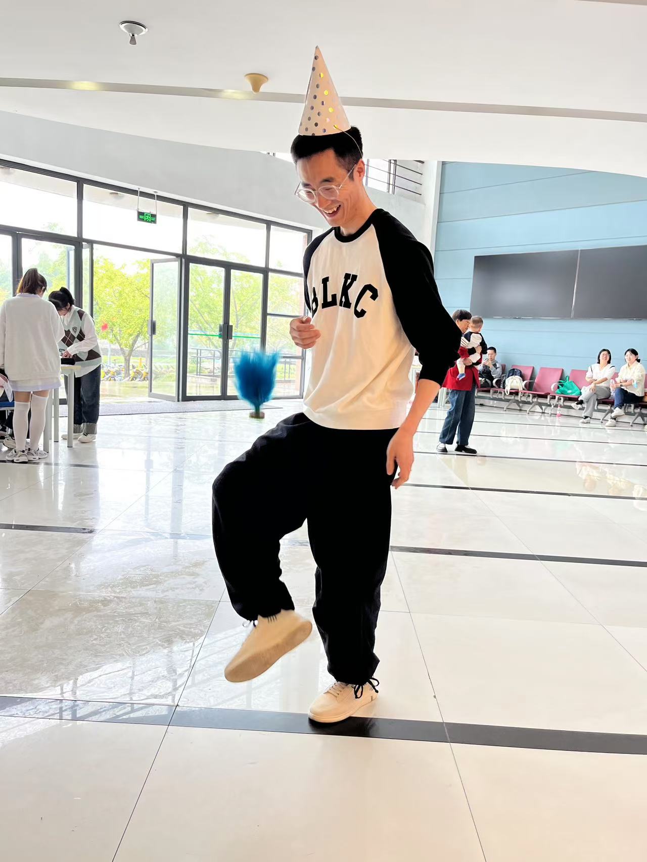 頭戴高帽,足踏彩毽,身姿輕盈,笑語滿天??矗ψ釉谕瑢W們腳尖起舞!