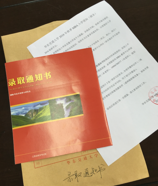 江西華東交通大學(xué)(雙證MBA)錄取通知書