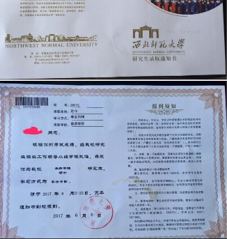 西北師范大學(xué)錄取通知書(shū)