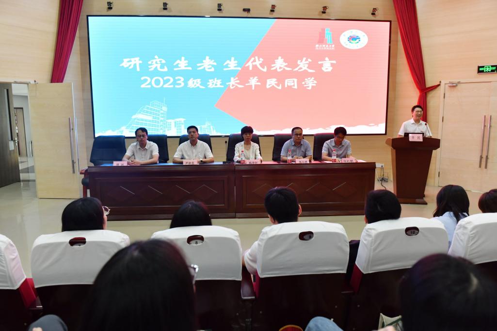 2023級(jí)MBA班長(zhǎng)羊民同學(xué)作為老生代表為新生提供這一年來(lái)學(xué)習(xí)經(jīng)驗(yàn)與感悟,分享了這一年來(lái)在浙師大求學(xué)與生活上的體會(huì),課上學(xué)習(xí)、課下討論,參加團(tuán)隊(duì)拓展、企業(yè)考察,趣味運(yùn)動(dòng)會(huì)、迎新晚會(huì)等豐富多彩的校園學(xué)習(xí)活動(dòng),全方位提升了我們綜合素養(yǎng)為初入浙師大的同學(xué)們帶來(lái)強(qiáng)大信心。他堅(jiān)信:天行健,君子以自強(qiáng)不息”請(qǐng)所有的同學(xué)們放下?lián)幕驊n(yōu)慮,堅(jiān)定理想,大步前行。