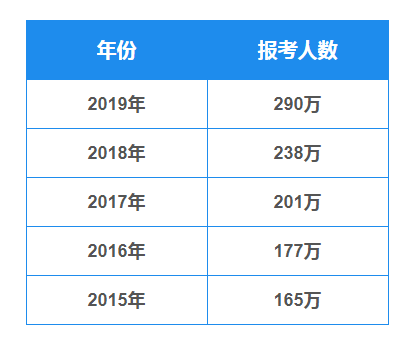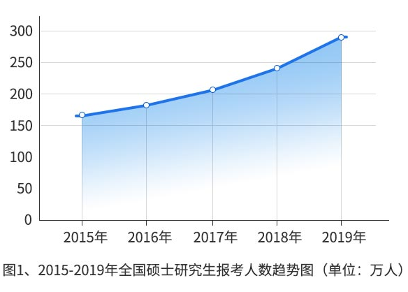 2018年12月23日,又一年的考研大戰(zhàn)開始,這一年的考研人數(shù),再一次變成了“歷史新高”。從教育部公布的數(shù)據(jù)來(lái)看,2019年全國(guó)考研報(bào)名人數(shù)達(dá)到了史無(wú)前例的290萬(wàn)人,比2018年考研人數(shù)增加了52萬(wàn)人,增幅達(dá)到了21.8%,考研增加人數(shù)和增長(zhǎng)率均為近年來(lái)最高。從上圖中我們可以看出,近5年,考研人數(shù)逐年增長(zhǎng),同2015年的165萬(wàn)人相比增加了125萬(wàn)人,研究生報(bào)考人數(shù)的快速上漲也引發(fā)了社會(huì)的廣泛關(guān)注。