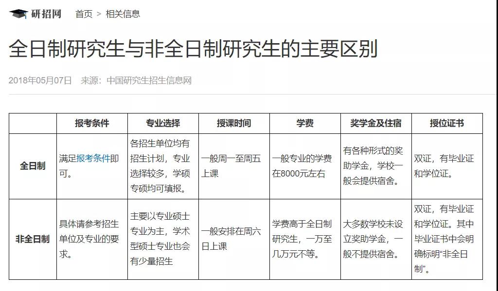 根據(jù)研招網(wǎng)信息,全日制和非全日制研究生的區(qū)別如下: