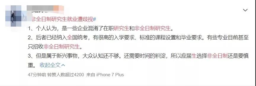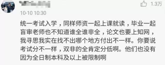 也有人呼吁,非全日制研究生應(yīng)該得到公平對待: